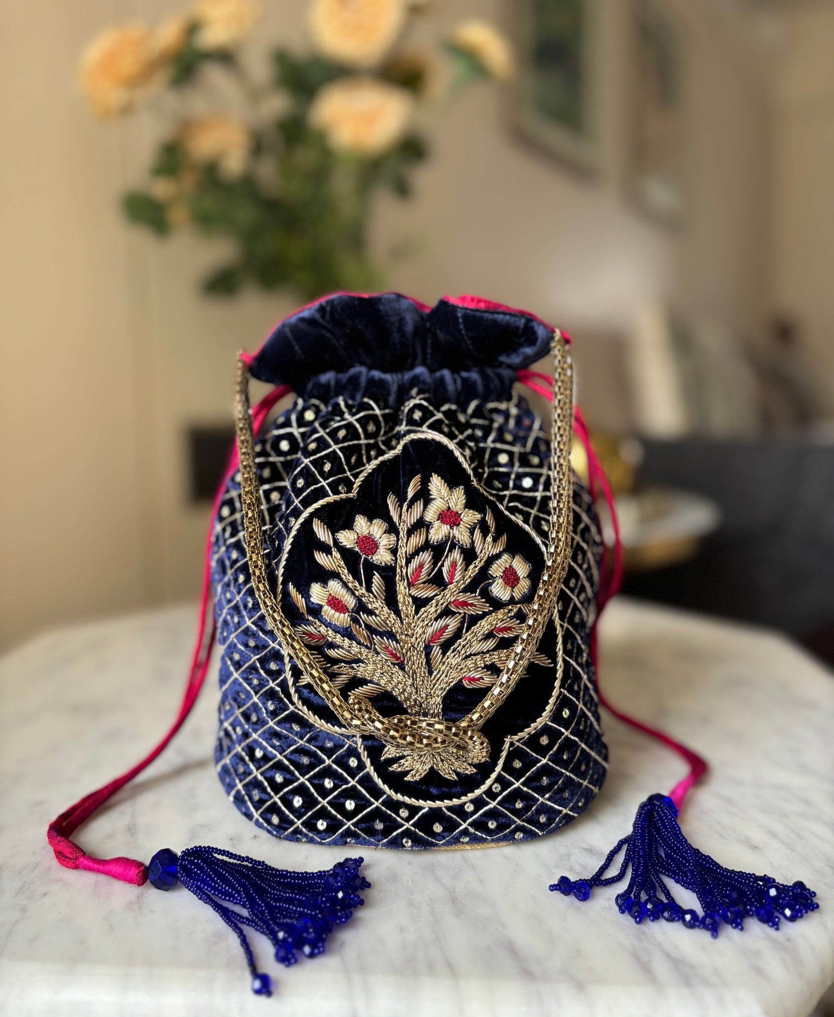 Fabric: Velvet base, contrast silk dori and blended silk lining.