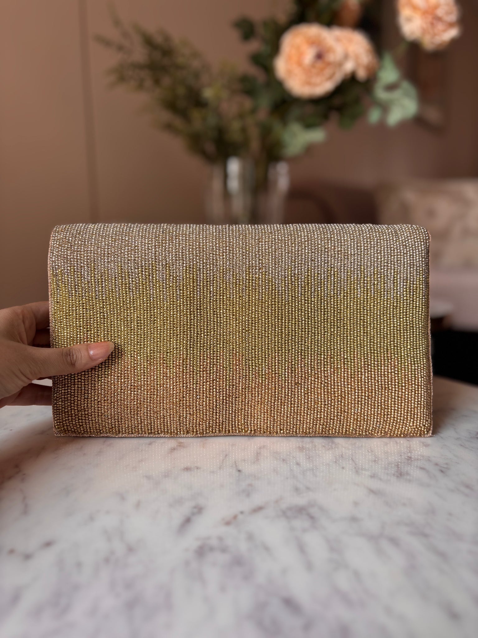 Hand embroidery: Bead work in beautiful shades of gold and silver in an ombre effect.